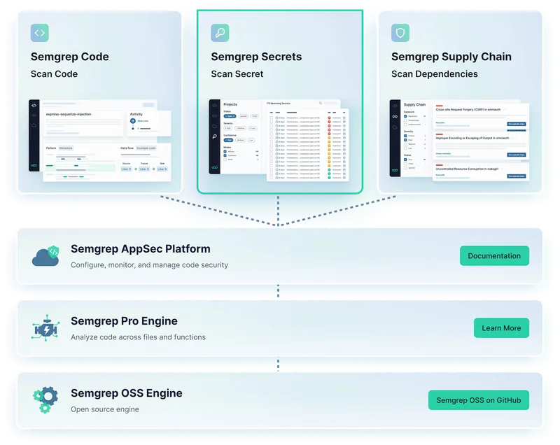 Semgrep Secrets uses OSS + Pro Engines to find secrets specific to your code.